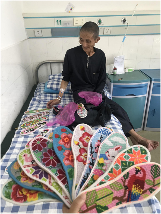 老人名叫郑际武,籍贯湖南永州,1936年出生,30多年前来到黄沙瑶族乡做缝纫生意。老人擅长织毛衣、绣花和打鞋垫,一生清贫简朴,却乐于助人,帮助了很多大山里求学的孩子。这次,老人因咳嗽咳痰、高血糖、胆结石等导致身体不适入院。