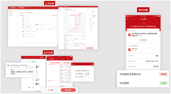 比如,通过公文移动签批功能,领导即使外出,也能在移动端完成公文签批操作,避免公文流转卡在签批环节;公文同步传阅功能,解决了纸质公文在逐级、逐科室、逐人传阅过程中费时费力的问题;公文的自动归档功能方便随时查看和追溯。