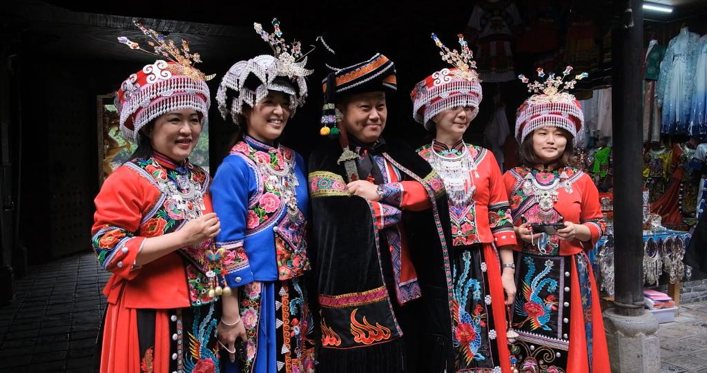 身着黑斗篷、缠上青头帕,台湾东森电视台记者杨钊在视频连线中向台湾观众介绍:“这套服装以黑色和红色为基调,色彩丰富、明艳,穿戴起来是一次难忘的体验。”