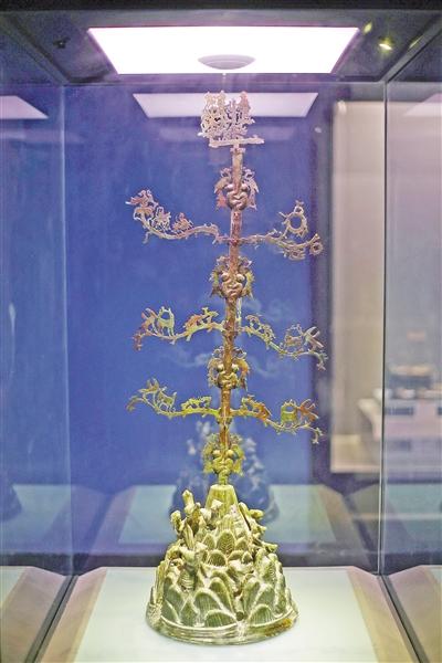 其中出土的东汉绿釉红陶扶桑,俗称“摇钱树”。“摇钱树”是我国西南地区的一种特殊陪葬品。“传说摇动树干,就会源源不断地掉下钱币,在老百姓心中,它就是财富的象征。”秦佳颖说。