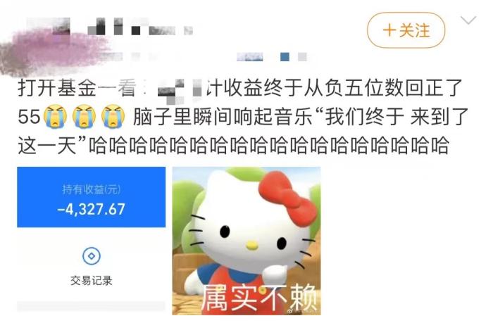 也有网友自嘲到,“心血来潮地看了一眼自己的基金,发现自己以-270块钱的优异成绩,战胜了上海97%的基民”。