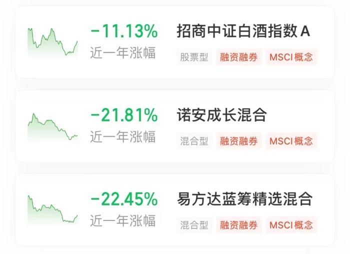 中新财经注意到,即便是近期翻红的热门基金,在过去一年的总收益率也是负数,可谓是经历了漫长的低谷期。