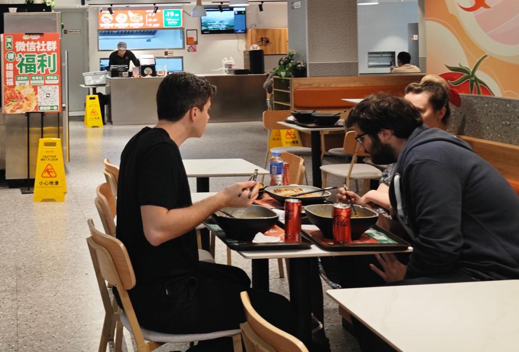 3月23日,在一内地麻辣烫品牌位于香港中环的门店内,几名外国顾客在用餐。新华社记者 褚萌萌 摄