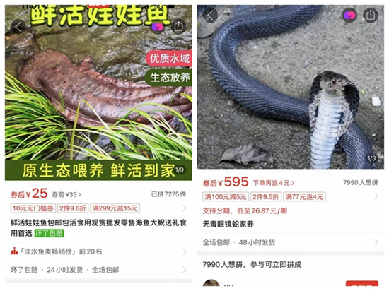 眼镜蛇、娃娃鱼……多个电商平台卖“野味”