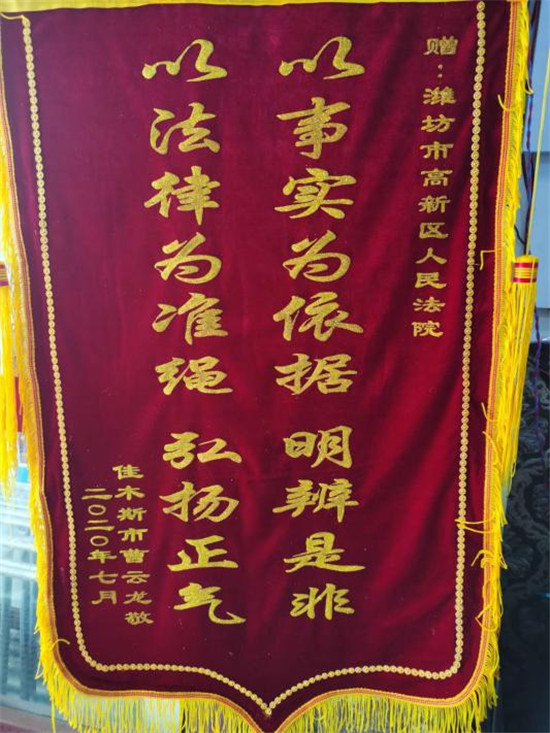 立案之后,由于疫情的原因贵院迟迟没有安排开庭,使我更加感到惴惴不安。终于接到法院的传票,我提前两天就来到了潍坊。因黑龙江省疫情出现反复,我方为了配合防疫工作,口头提出了延期审理。但贵院的高鹏法官考虑到我们远在一千多公里的黑龙江省,往返费用较大,其本人及合议庭成员在充分做好防护的前提下,准时开庭。在庭审过程中,高鹏法官让双方当事人及代理人充分发表意见,其控制庭审节奏、驾驭庭审的能力,严谨的审判作风,让我感受到了高鹏法官团队公正、文明的敬业精神。