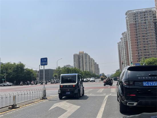 5 月 13 日,北京市丰台区某路口,一辆 老年代步车占用左转机动车道等待红灯 李韵石 / 摄