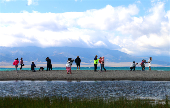 ▲2023 年 8 月 12 日,新疆塔城,游客在赛里木湖景区环湖观光游玩