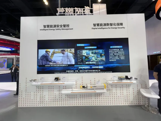 ▲国内油气企业正在积极开发智能管控体系,图为两家国企在展示AI赋能的创新型产品 王茜/摄