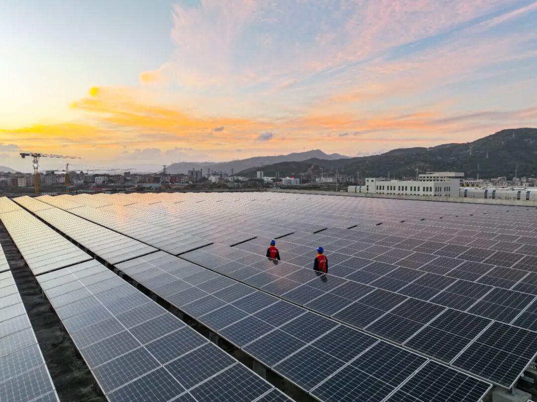 国网福州供电公司工作人员正在对光伏设备进行巡检。 CFP