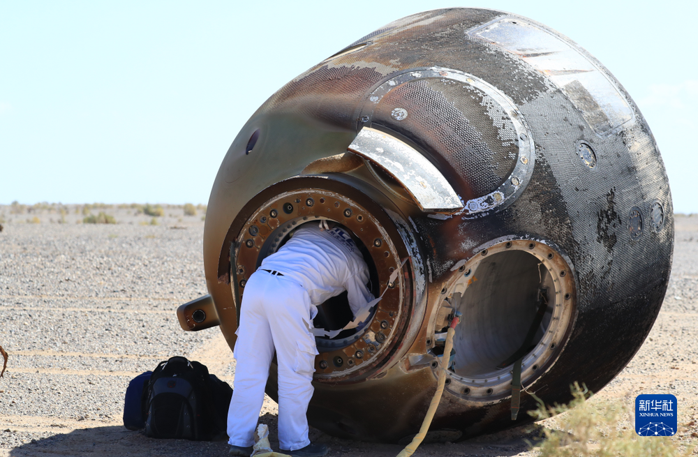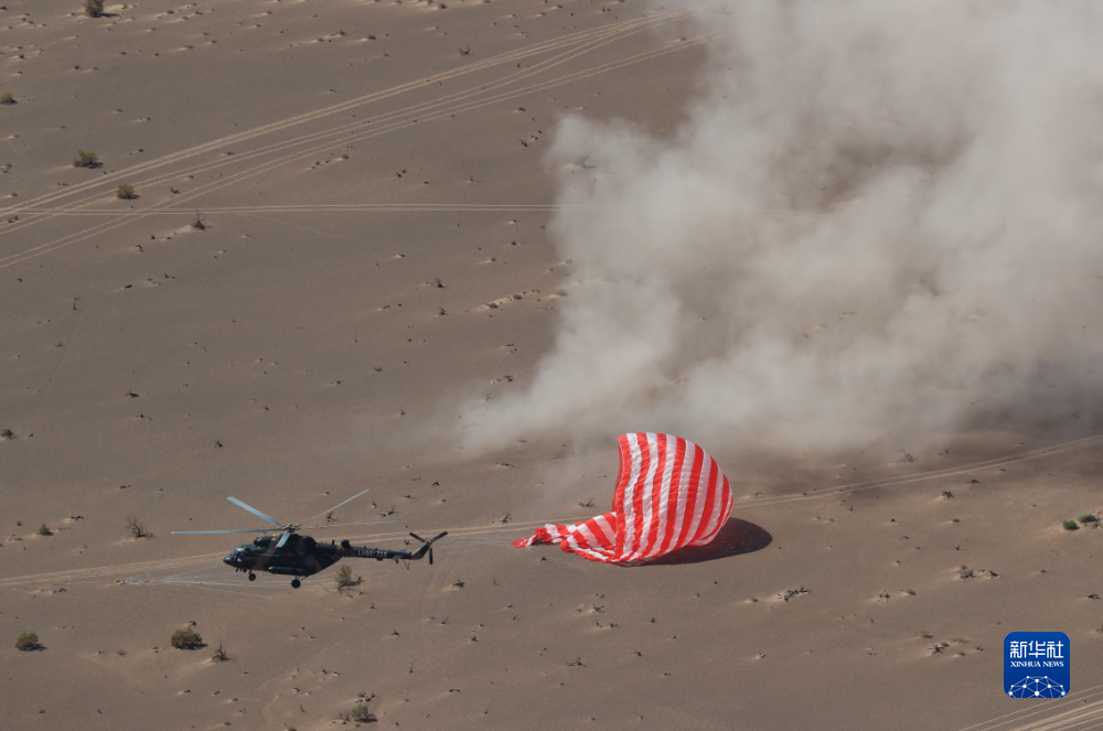 9月17日,神舟十二号载人飞船返回舱在东风着陆场成功着陆。新华社记者琚振华摄