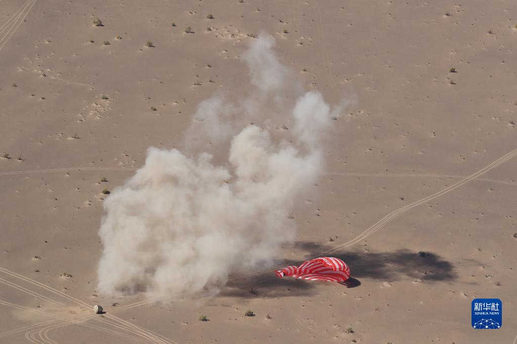 神舟十二号载人飞船返回舱反推火箭成功点火后,平安降落在东风着陆场预定区域。这是神舟载人飞船首次在东风着陆场着陆。(记者黎云、张汨汨)