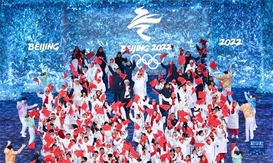 2022年2月20日晚,北京第二十四届冬季奥林匹克运动会闭幕式在国家体育场举行。这是中国代表团成员入场。新华社记者 兰红光 摄