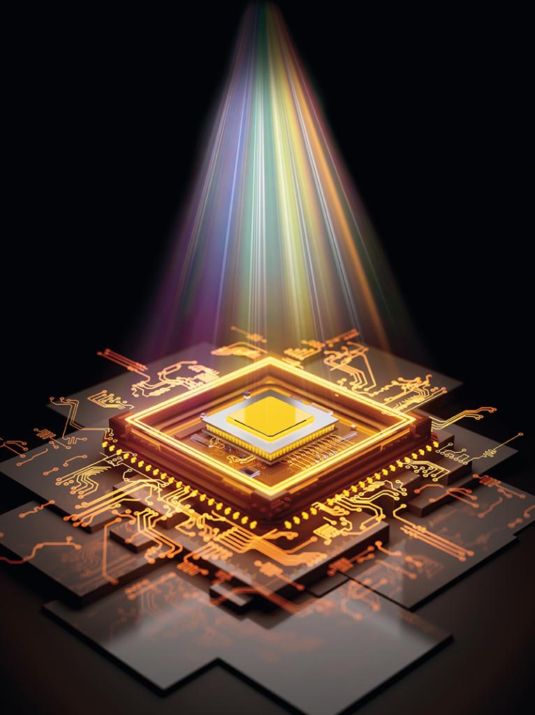 全模拟光电智能计算芯片效果图。经长期联合攻关,清华大学研究团队突破传统芯片的物理瓶颈,创造性提出光电融合的全新计算框架,并研制出国际首个全模拟光电智能计算芯片(简称ACCEL) 新华社图