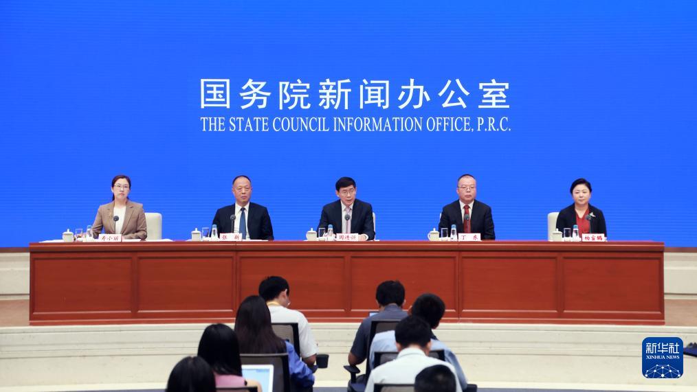 9月18日,国务院新闻办公室在北京举行“推动高质量发展”系列主题新闻发布会,国家体育总局副局长周进强、国家体育总局群众体育司司长丁东、国家体育总局竞技体育司司长张新、国家体育总局体育经济司司长杨雪鸫出席介绍情况,并答记者问。新华社记者 潘旭 摄