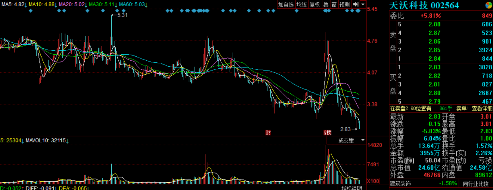 与其业绩“变脸”相似,天沃科技股价也在近1个多月经历了一次过山车行情。去年12月17日至28日,天沃科技股价从最低3.05元/股上涨至4.93元/股。随后却急速回落,截至2月3日收盘,天沃科技股价报2.83元/股,总市值24.60亿元。