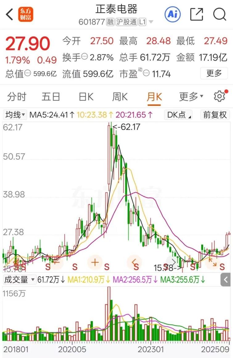 截至9月1日收盘,正泰电器最新市值为599.6亿元。