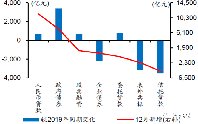 数据显示,12月末我国社会融资规模存量达到284.83万亿元,同比增长13.3%,涨幅较上月回落了0.3个百分点。而当月新增社会融资规模为1.72万亿元,低于预期的2.18万亿元,并较上月和去年同期分别少增加了4143亿元和3830亿元。