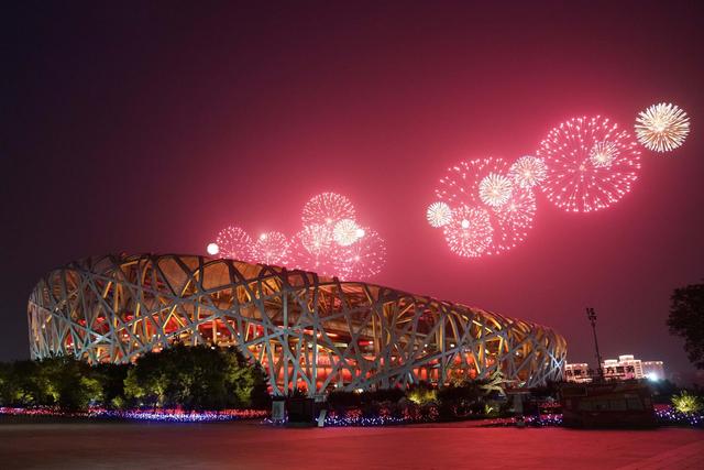 6月28日晚,庆祝中国共产党成立100周年文艺演出《伟大征程》在国家体育场盛大举行。绚烂的焰火盛放在国家体育场上空。