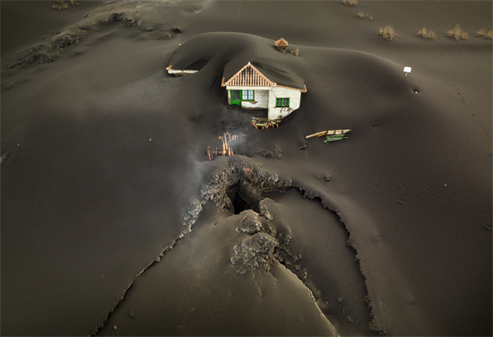 12月1日,西班牙拉帕尔马岛火山连续喷发10周,附近地区被厚厚的火山灰覆盖,如同沙漠。