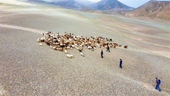 6月12日,新疆喀什,民警全程护航牧羊人翻越大山前往夏季牧场。