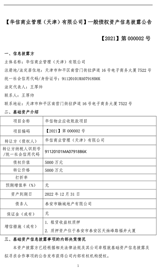 信息披露方:华信商业管理(天津)有限公司