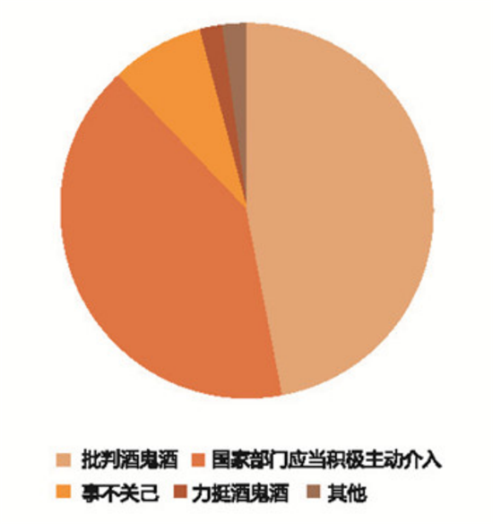 对于媒体报道经销商石磊举报酒鬼酒涉嫌添加甜蜜素一事,网民发表了不同观点,笔者抽样300条网友观点进行统计,发现主要观点集中于批判酒鬼酒(47%)、国家部门应当积极主动介入(41%)、事不关己(8%)、力挺酒鬼酒(2%)以及其他观点(2%)。