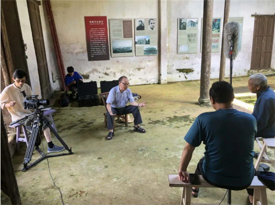 图为作者在配合扫黑除恶专项斗争创作的《扬眉剑出鞘》排练现场。