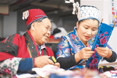 “哒哒哒哒……”在贵州省黔西南布依族苗族自治州兴义市洒金街道栗坪社区服饰扶贫车间里,缝纫机声响个不停,从邻县扶贫搬来的新市民程青琼和50余名工人正认真工作。