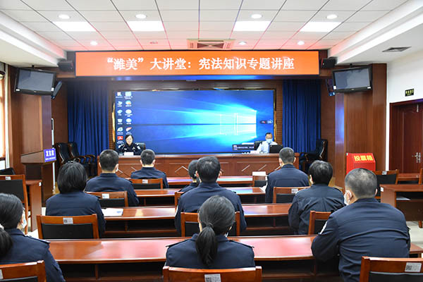 在第七个“国家宪法日”来临之际,12月3日,山东出入境边防检查总站潍坊出入境边防检查站举办“12.4宪法宣传周”宪法专题讲座。讲座邀请该站法律顾问潍坊学院法学院副院长赵宝华教授作辅导报告。