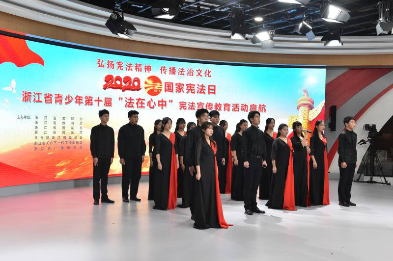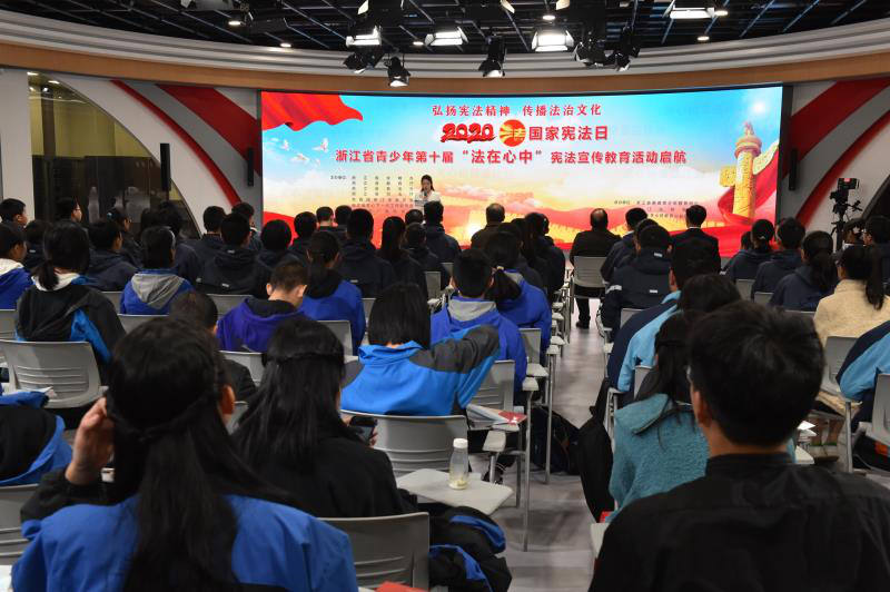 11月29日下午,第七个国家宪法日暨浙江省青少年第十届“法在心中”宪法宣传教育活动启航仪式在杭州举行。