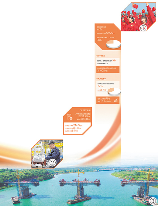 迈进新征程,奋进新时代,我国工人阶级和广大劳动群众将更加紧密地团结在以习近平同志为核心的党中央周围,勤于创造、勇于奋斗,扬帆再出发。(数据来源:全国总工会)