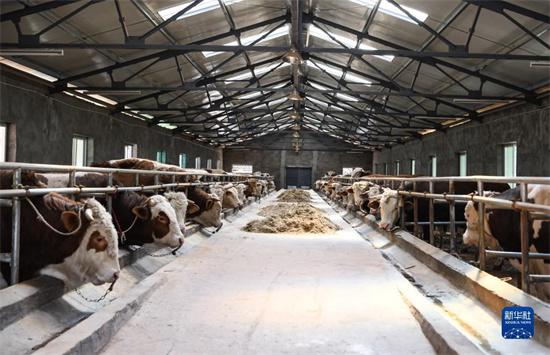 这是2022年4月21日在四川省凉山彝族自治州昭觉县三河村拍摄的富民肉牛养殖场。新华社记者 王曦 摄
