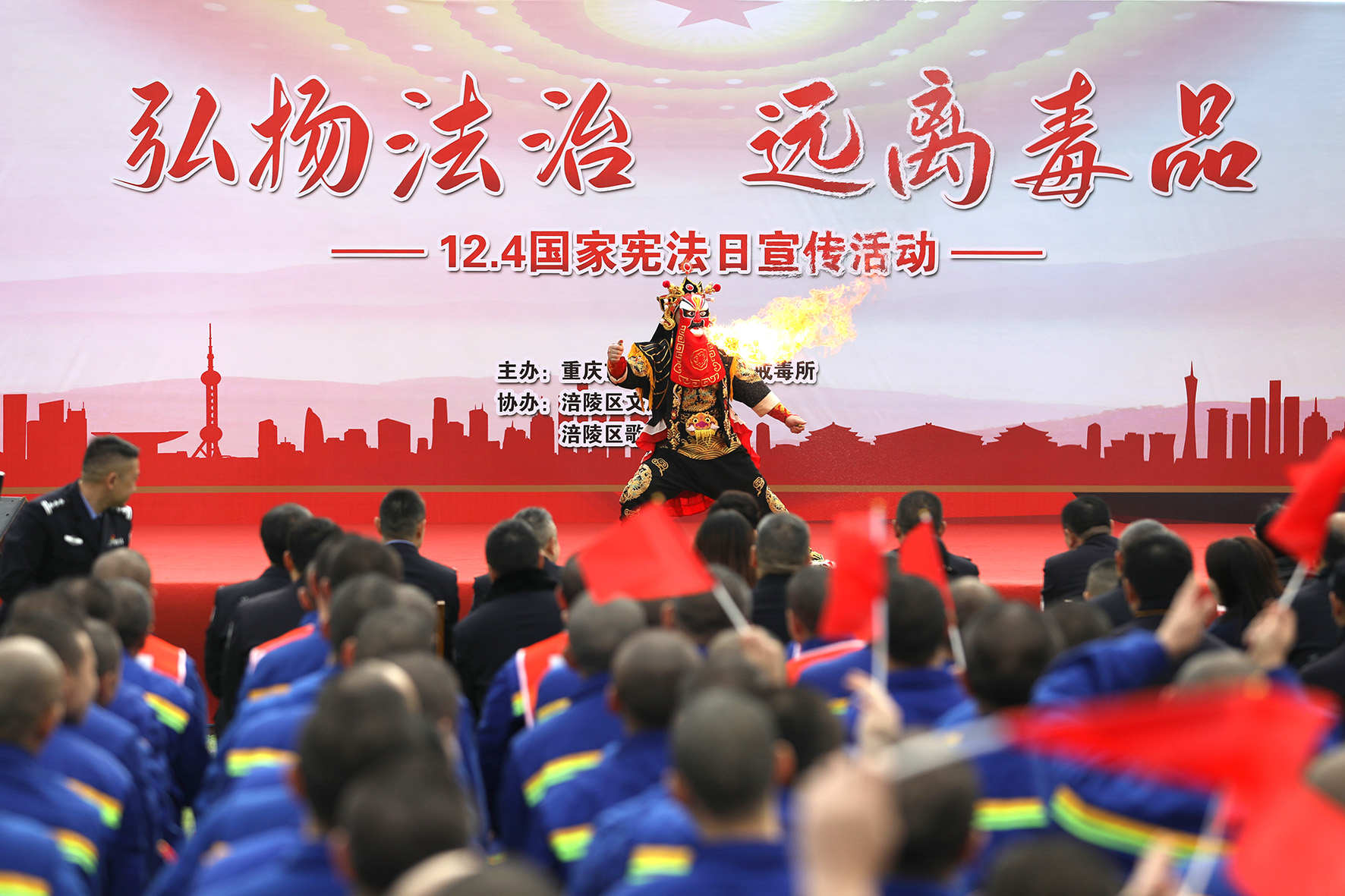 12月4日,一台主题为“弘扬法治 远离毒品——12·4国家宪法日宣传活动”文艺帮教演出在重庆市涪陵强制隔离所进行。