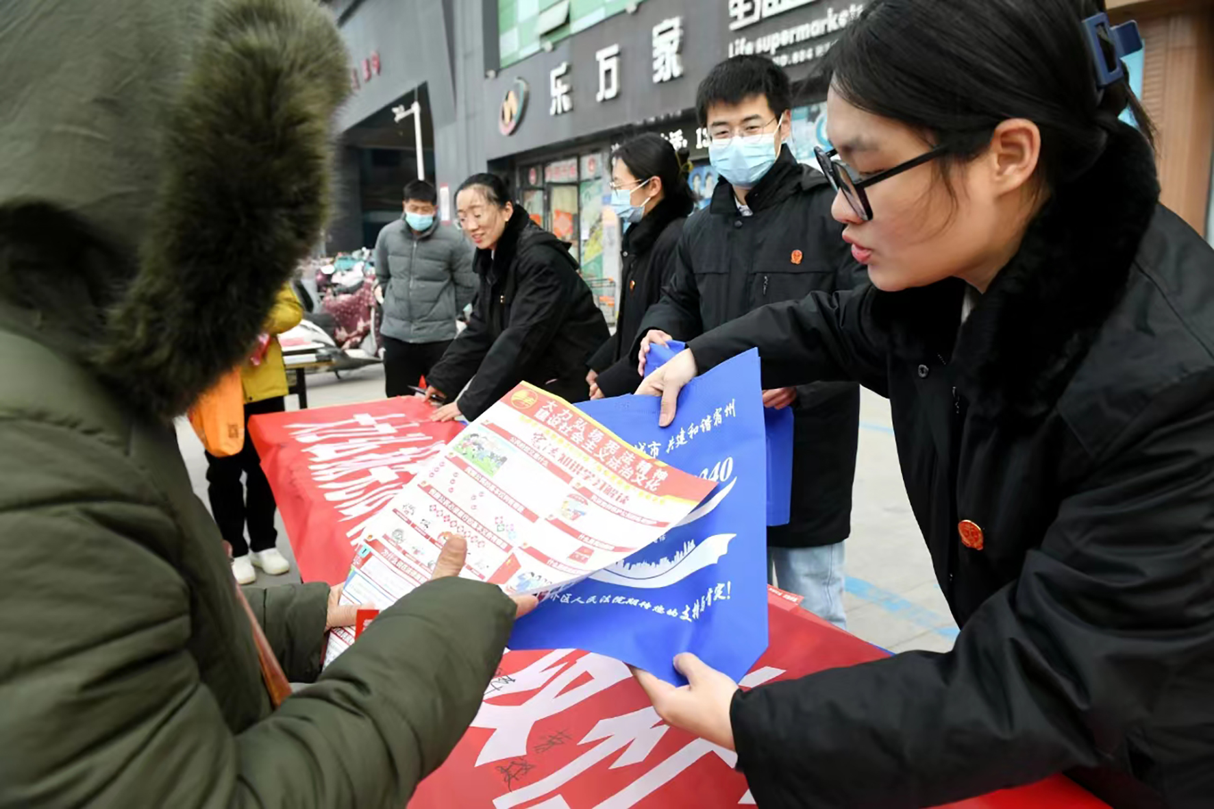 12月4日,安徽省宿州市埇桥区人民法院法官在街头向市民讲解宪法知识。