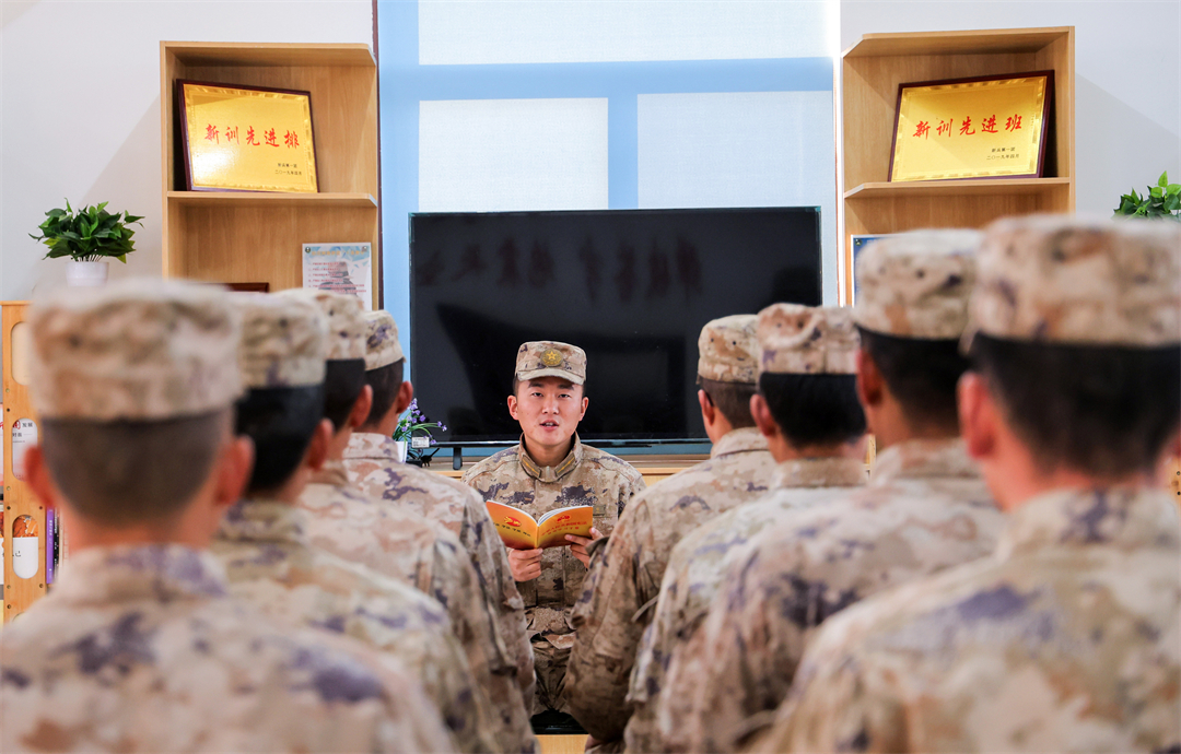 图为12月1日,该旅某连官兵正在学习宪法知识。