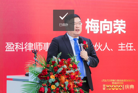梅向荣主任首先对于本次到场参加庆典的各位嘉宾表示欢迎,同时对盈科全体同仁表示衷心感谢。他讲到盈科突破10000名律师是不忘初心、砥砺前行新征程的开始。未来,盈科将迈上新的发展阶段,以发展成为中国律师行业新标杆之一为目标,为中国律师、法治国家、社会主义现代化建设做出不懈努力,一起建设盈科的美好明天。