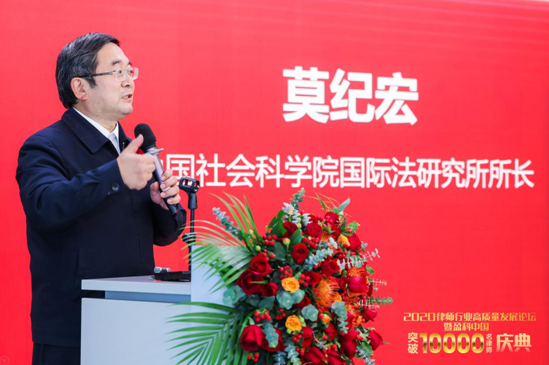 接下来莫纪宏所长为此次庆典送上祝福,并发表了热情洋溢的讲话。他讲到盈科践行规模化发展,至今突破10000名律师,是中国律师界的骄傲,盈科创建了一个世界范围内的第一,实现了从业律师人数的第一。希望盈科继续以高质量发展为目标,为建设全球领先律师事务所不懈努力。