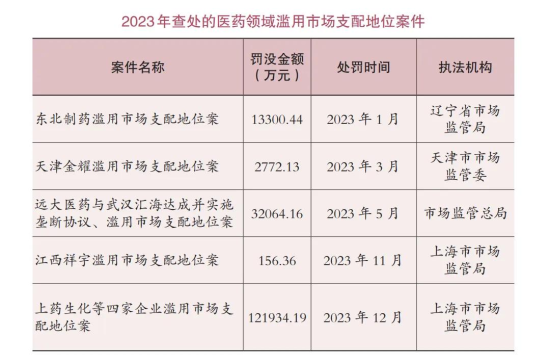 去年6月,根据市场监管总局(国家反垄断局)发布的《中国反垄断执法年度报告(2023)》,医药领域共查处滥用市场支配地位案件5件,罚没金额合计17.02亿元。其中4起都为原料药市场垄断,另外1起为短缺药不公平高价行为垄断调查案件。